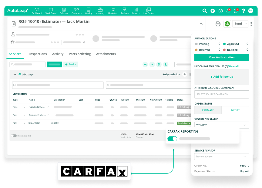 AutoLeap’s auto repair estimate software gives your shop a powerful, efficient way to create accurate quotes in minutes.