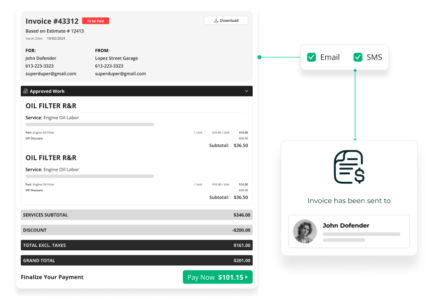 Generate accurate invoices in one click, get paid faster, and focus more on repairs, not paperwork.