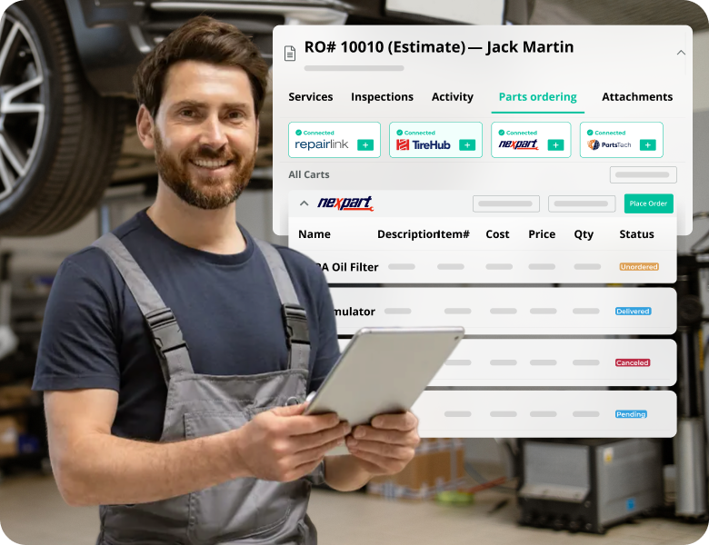 Yes, mobile mechanics can order parts directly within AutoLeap through their trusted parts suppliers integrations, and track each order status from the Work Board.